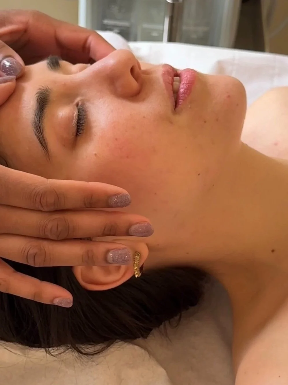Un massage ciblé sur les zones marquées (contour des yeux, sillons nasogéniens, front) défroisse et lisse les traits, réactivant la microcirculation et ravivant l’éclat naturel du visage.